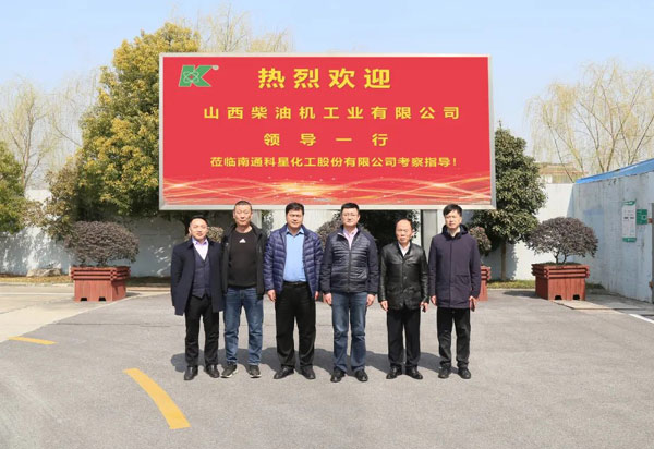 2023年3月6日,山西柴油機工業有限公司領導一行蒞臨南通科星化工股份有限公司生產基地考察指導,科星董事長吳龍鐵和總經理傅士超熱情接待。