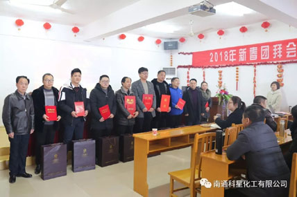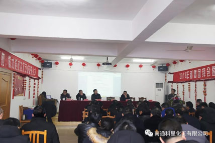 白甸鎮(zhèn)黨委副書(shū)記、鎮(zhèn)長(zhǎng)許栩親臨年會(huì)現(xiàn)場(chǎng)致賀辭。集團(tuán)董事長(zhǎng)吳龍鐵先生、科星公司總經(jīng)理傅士超先生等領(lǐng)導(dǎo)與會(huì)做報(bào)告。傅總經(jīng)理對(duì)上年度工作進(jìn)行了務(wù)實(shí)的總結(jié),表彰了工作表現(xiàn)優(yōu)秀的員工。吳董事長(zhǎng)展望2018年度預(yù)期銷(xiāo)售目標(biāo)達(dá)到2億元,制定了2019-2023年五年規(guī)劃:科星化工實(shí)現(xiàn)銷(xiāo)售收入5億元,江蘇科星新材料集團(tuán)累計(jì)銷(xiāo)售收入10億元,爭(zhēng)取創(chuàng)業(yè)板成功上市。