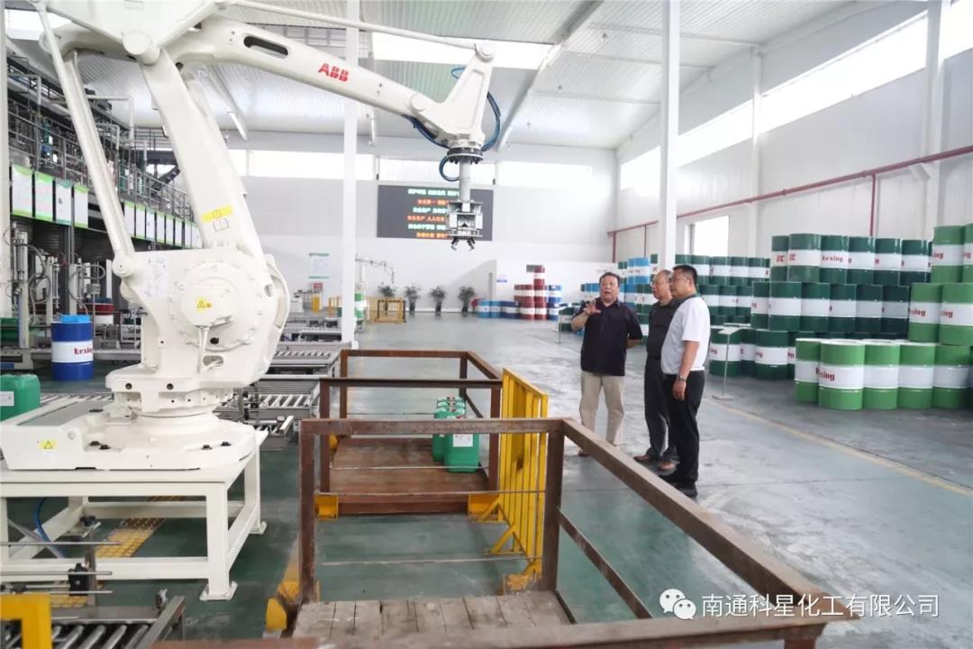 6月5號,中國歐洲經濟技術合作協會齒輪傳動產業分會副秘書長陳憲宇、潘溫岳前來南通科星化工調研指導。公司副總吳昌祥陪同來賓們前往智能生產車間、中控室、化驗室等處進行了實地考察。