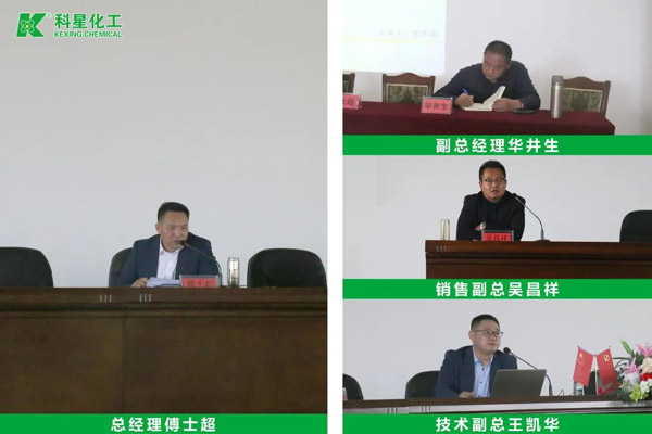 總經理傅士超、副總經理華井生、銷售副總吳昌祥、技術副總王凱華分別為銷售部全體員工對營銷策略、銷售方法經驗以及正確推薦選用產品、技術服務等相關內容進行培訓和討論
