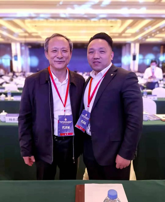山河智能裝備股份有限公司董事長何清華(左)與南通科星化工有限公司總經理傅士超(右)合影留念