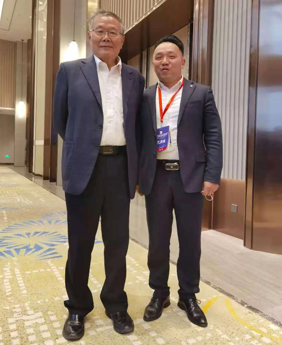 徐工集團工程機械有限公司董事長王民(左)與南通科星化工有限公司總經理傅士超(右)合影留念