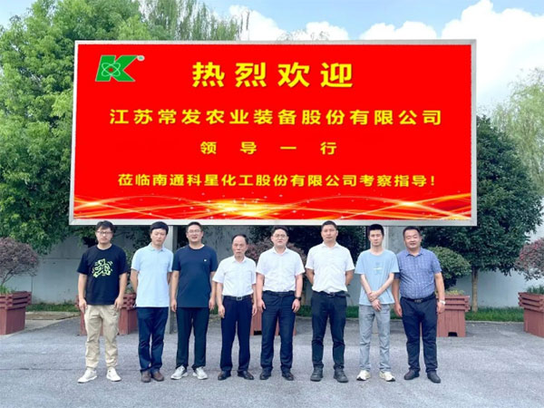 2023年8月9日江蘇常發農業裝備股份有限公司領導一行親臨南通科星化工股份有限公司考察調研,科星董事長吳龍鐵、執行總裁吳曉強、銷售副總吳昌祥參與接待。