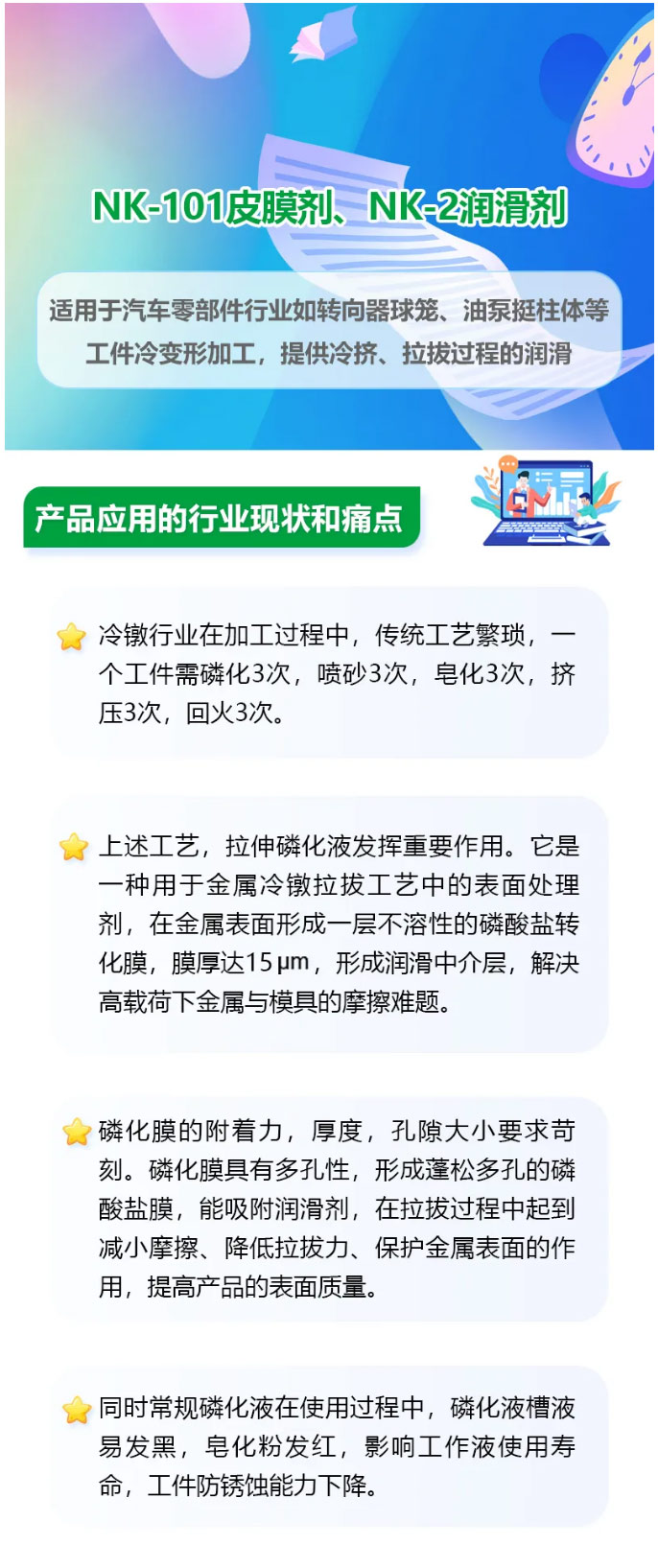 高潤滑又堅固/耐極壓又穩定/南通科星NK-101皮膜劑、NK-2潤滑劑組合產品解決冷變形加工所需
